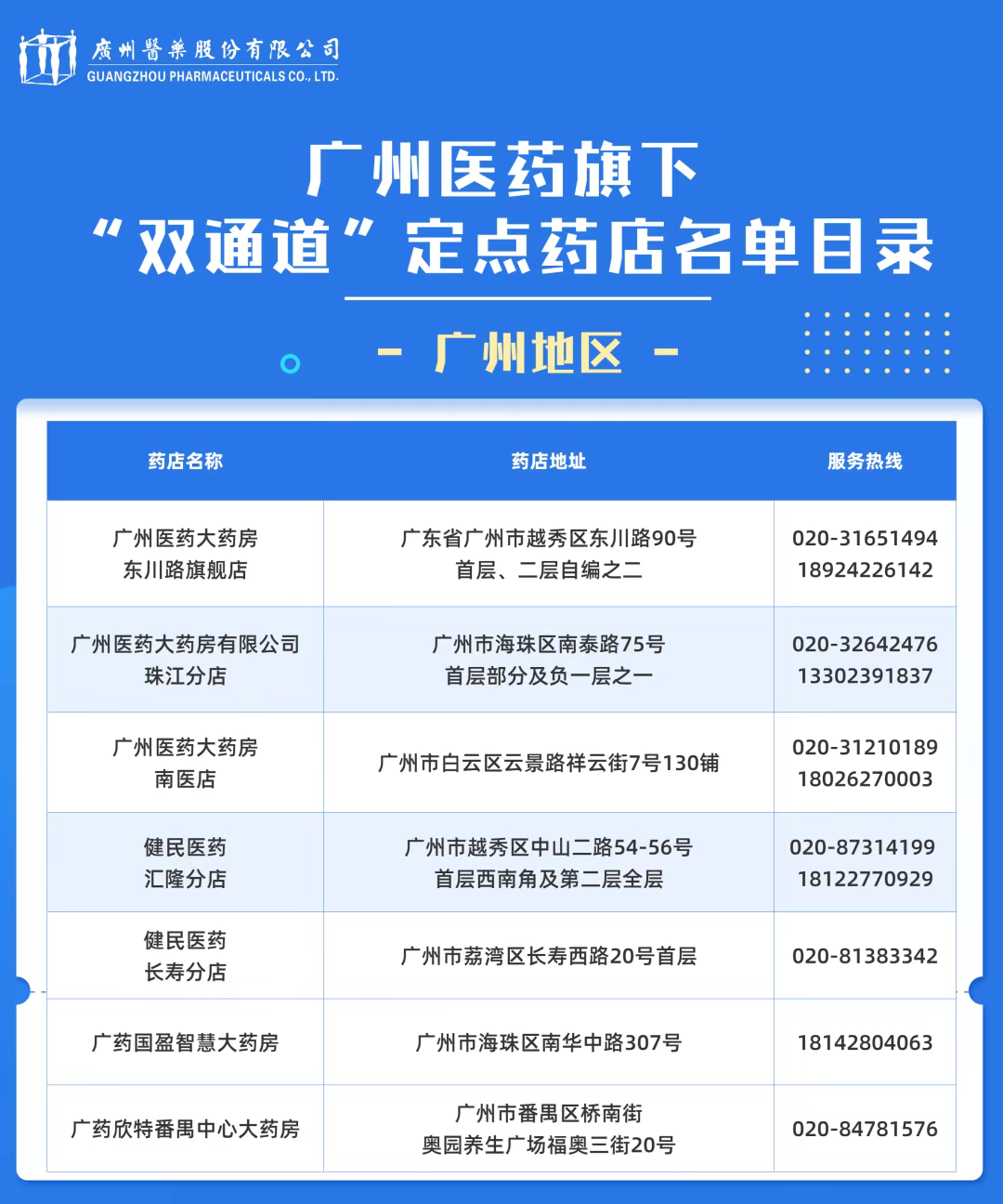廣州醫(yī)藥旗下“雙通道”定點(diǎn)藥店(廣州地區(qū))