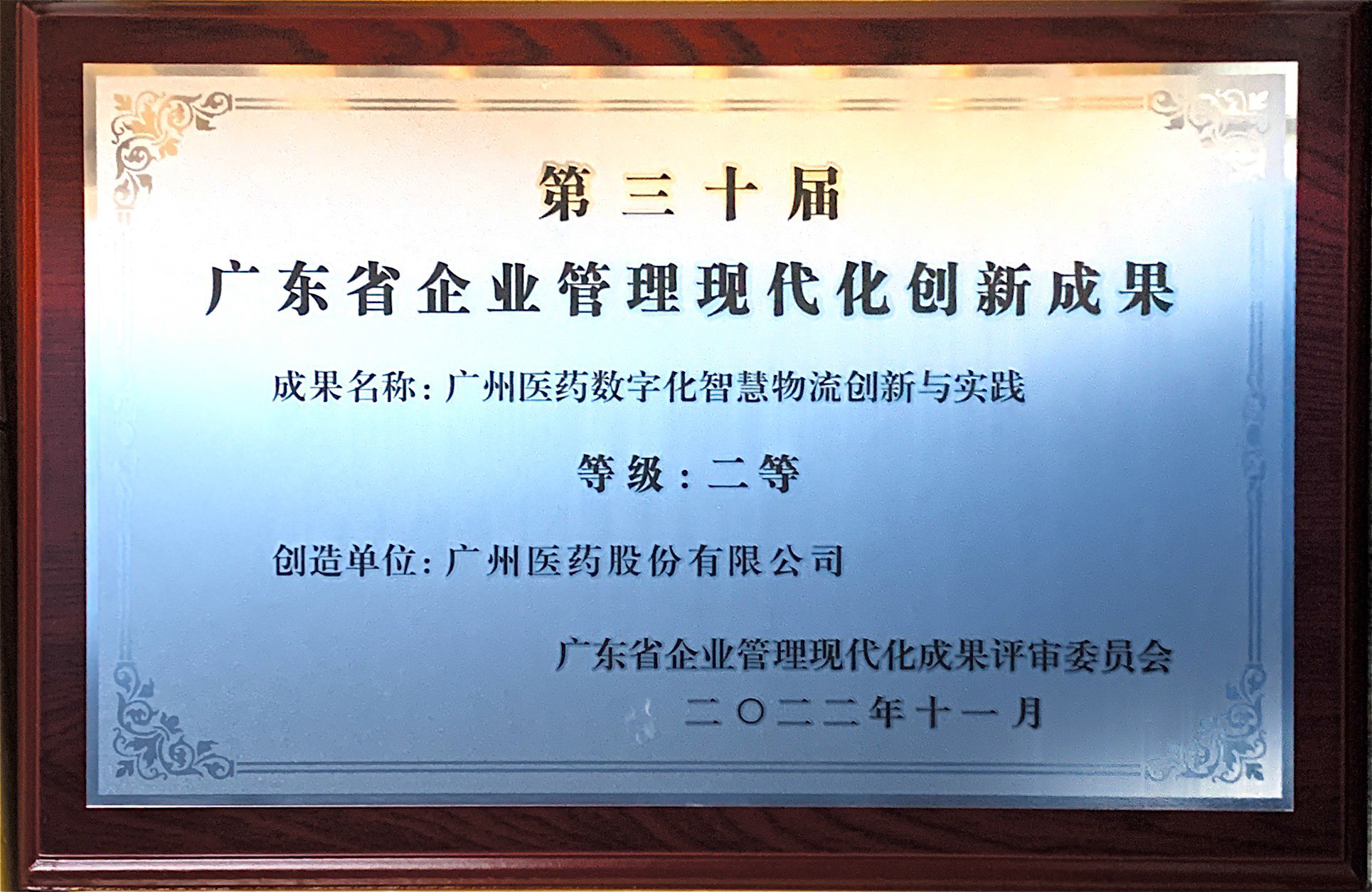 《廣州醫(yī)藥數(shù)字化智慧物流創(chuàng)新與實(shí)踐》榮獲廣東省企業(yè)管理現(xiàn)代化創(chuàng)新成果二等獎(jiǎng)