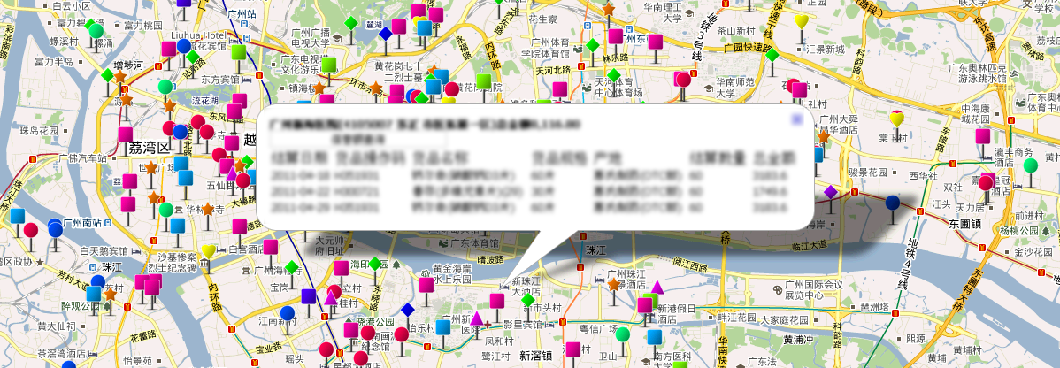 為了更準確地了解我司市內(nèi)零 售單店的開戶情況,我司向資訊部提出構(gòu)建"客戶地址定位系統(tǒng)的開發(fā)需求,實現(xiàn)以Google實時地圖為模板,利用不同顏色的圖標代表不同的客戶類型(一個圖釘代表地圖上的一個客戶),縮放具體到每一座城市,每一個區(qū)域、每一條街道,多維度直觀展示客戶的網(wǎng)絡覆蓋情況。